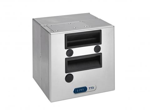 La TT3 tiene un cabezal de impresión de 35 mm de anchura que permite codificar pequeñas áreas de mensaje de 32 mm x 30 mm, y un eficaz accionamiento por cinta que reduce el desperdicio de ésta a mínimos.